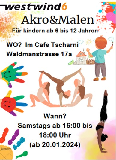 Für die Körperliche und Intellektuelle Entwicklung von Kindern und Jugendliche. Wir lernen verschiedene Akrobatik Elementen. Wie Handstand, Rad, Purzelbaum und wir starken den ganzen Körper. Wir werden Yoga Challenge machen und mit Bällen spielen. Mit Malen entwickeln wir unsere Kreativität und lernen etwas Neues und Interessantes. Akrobatik und Malen tragen zur harmonischen Entwicklung des Kindes bei.